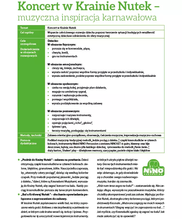 W styczniu troszczymy się również o rozwój muzyczny dziecka, zachęcając Państwa do dostarczania podopiecznym bodźców słuchowych. „Muzyka będzie wnosić do aktualnego i przyszłego życia dziecka o wiele więcej korzyści, jeśli w kontaktach dziecka z muzyką uczestniczyć również będzie jego środowisko rodzinne, dostarczając mu wielu trudnych do osiągnięcia w przedszkolu i mediach stymulacji muzycznych. Dzisiejsza, złożona i wymagająca rzeczywistość nie sprzyja bowiem podejmowaniu przez rodziców takich działań, dlatego też ważne jest zwrócenie uwagi na ten aspekt wychowania przedszkolnego, jako elementu kształcenia muzycznego” – podkreśla Janusz Rusaczyk w artykule zatytułowanym „Rozwój muzyczny dziecka w okresie przedszkolnym”.